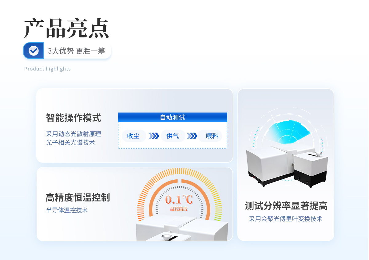 適用于任何干粉物料,特別是和水發生化學反應以及在液體中發生形狀變化的粉料,與濕法相比具有相同的準確度和重復性,可用于高等院校、研究機構和工礦企業的科學研究、新品開發、產品檢測和質量控制。