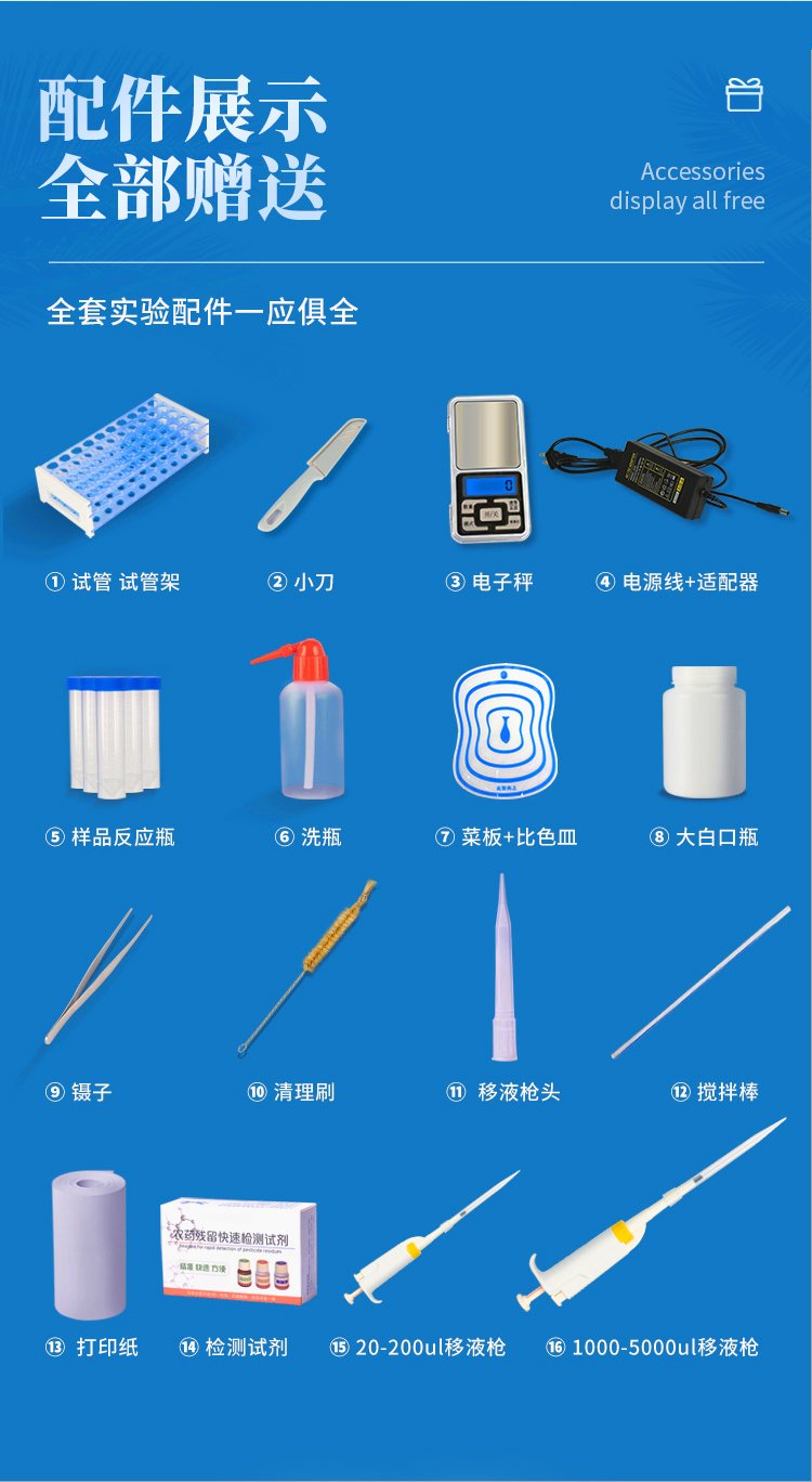 | 機器采用全新安卓智能系統,主控芯片采用 ARM Cortex-A7,RK3288/4核處理器,主頻1.88Ghz,運轉速度更快速,穩定性更強。 | 創新檢測模式: *儀器采用精密旋轉比色池設計,使用光源一致,可以解決各通道間由于光源誤差帶來的檢測結果誤差問題,檢測結果更加精準。 *儀器具有自動識別比色皿檢測功能,即:將樣品比色皿放入儀器后,點擊樣品檢測,儀器自動識別比色皿進行通道檢測。 | 供電方式:交直流兩用,直流 12V 供電,可連接車載電源,可配 6ah 大容量充電鋰電池,方便戶外流動測試。 | 顯示方式:7英寸液晶觸摸屏顯示,人性化中文操作界面,讀數直觀、簡單。 | 檢測通道:8個檢測通道,可以同時測試多個樣品,循環檢測,即放即檢,每個樣品由程序控制分別獨立工作,不會互相干擾。 | 高精光源系統: ①①儀器光源采用進口超高亮發光二極管,光源亮度可以自動調節與校準 ②智能恒流穩壓,光強自動校準,長時間連續工作光源無溫漂現象。 | 智能操作分析系統: ①儀器具有100多種蔬菜名稱菜單庫,分類管理,并可按需添加或刪除、編輯蔬菜名稱;可在同一檢測界面自動對應相關檢測通道一次性選擇1-24個樣品名稱,無需退出界面,節省操作時間。 ②內置新國家限量標準,與所測結果進行現場比對,并持續更新標準。 | 完善的配套硬件: ①采用串口5v打印機,可選擇手動打印或者自動打印,三分鐘出打印結果,打印格式為檢測人姓名、吸光度差值、檢測時間、檢測機構、樣品名稱及結果判定。 ②儀器具有無線上傳模塊,檢測結果可批量打印,批量上傳。 | 數據調用: ①儀器可存儲20萬條檢測結果, ②檢測結果為Excel表格,方便后期進行數據分析與匯總報告 ③儀器采用USB2.0接口設計,支持 U 盤存儲,方便數據的存貯和移動,并可隨時與計算機直接相連,實現數據查詢、瀏覽、分析、統計、打印等。 | 后期產品固件可升級。 | 安全證書,放心保障:儀器具有中國計量科學研究院校準證書,權威認證,使用放心。 |