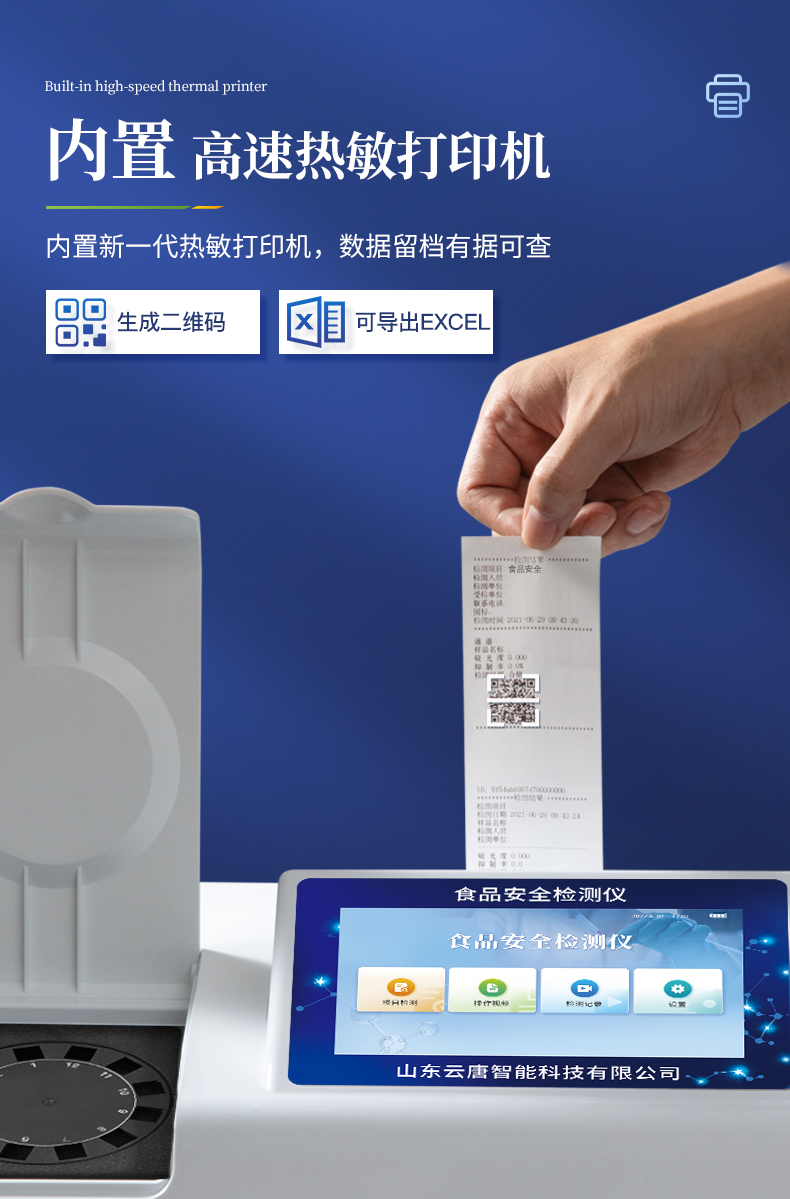 8.4、打印系統:內置全新打印機,可以打?。喉椖棵Q,二維碼,抽樣信息、檢測信息,受檢信息、復核信息、抽樣日期、檢測日期等信息的打印。