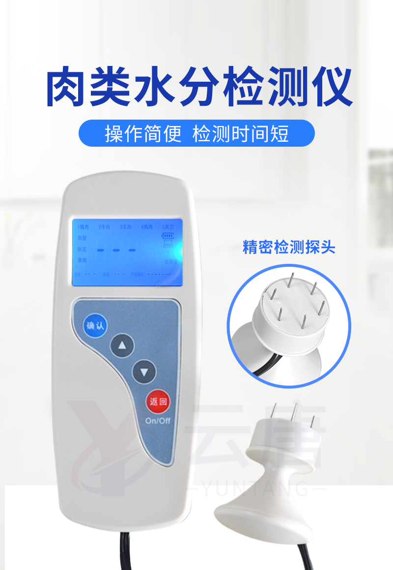 肉類水分檢測儀主要用于快速豬肉、牛肉、雞肉等動物肉類水分含量,從而判斷所測樣品是否為注水肉,該儀器設計精巧,單手可持,儀器可根據測定對象的品種,設定相應的判斷標準值。