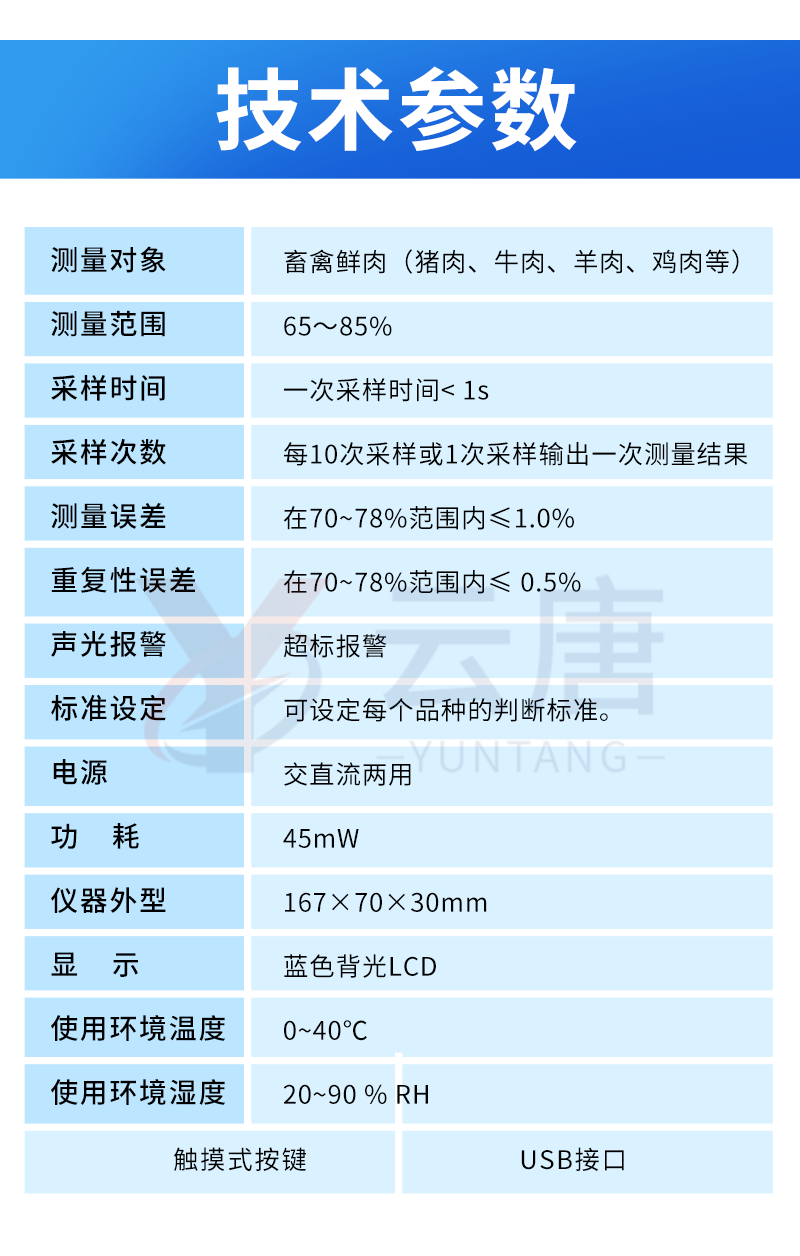 型號: YT-RLS肉類水分檢測儀產品簡介:肉類水分檢測儀主要用于快速豬肉、牛肉、雞肉等動物肉類水分含量,從而判斷所測樣品是否為注水肉,該儀器設計精巧,單手可持,儀器可根據測定對象的品種,設定相應的判斷標準值。YT-R···   更新時間:2026-03-14