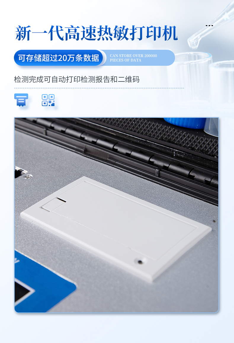 3、新一代高速熱敏打印機(jī),檢測(cè)完成可自動(dòng)打印檢測(cè)報(bào)告和二維碼。