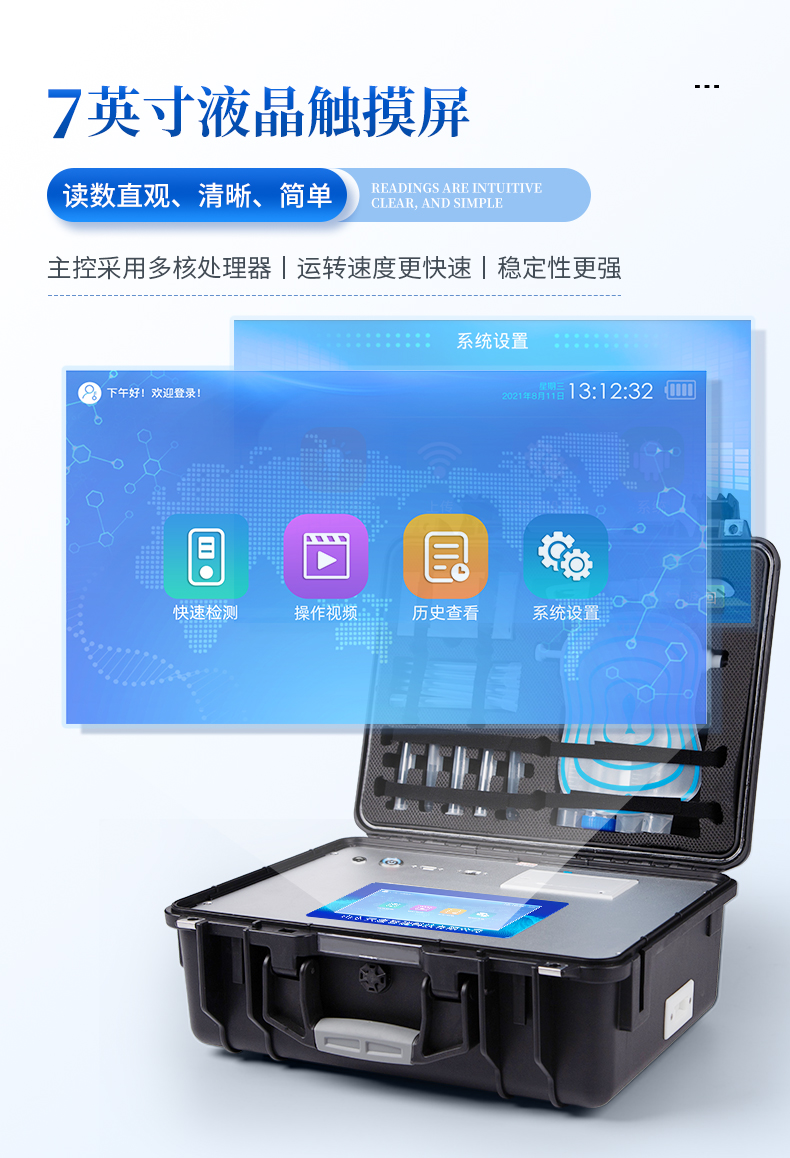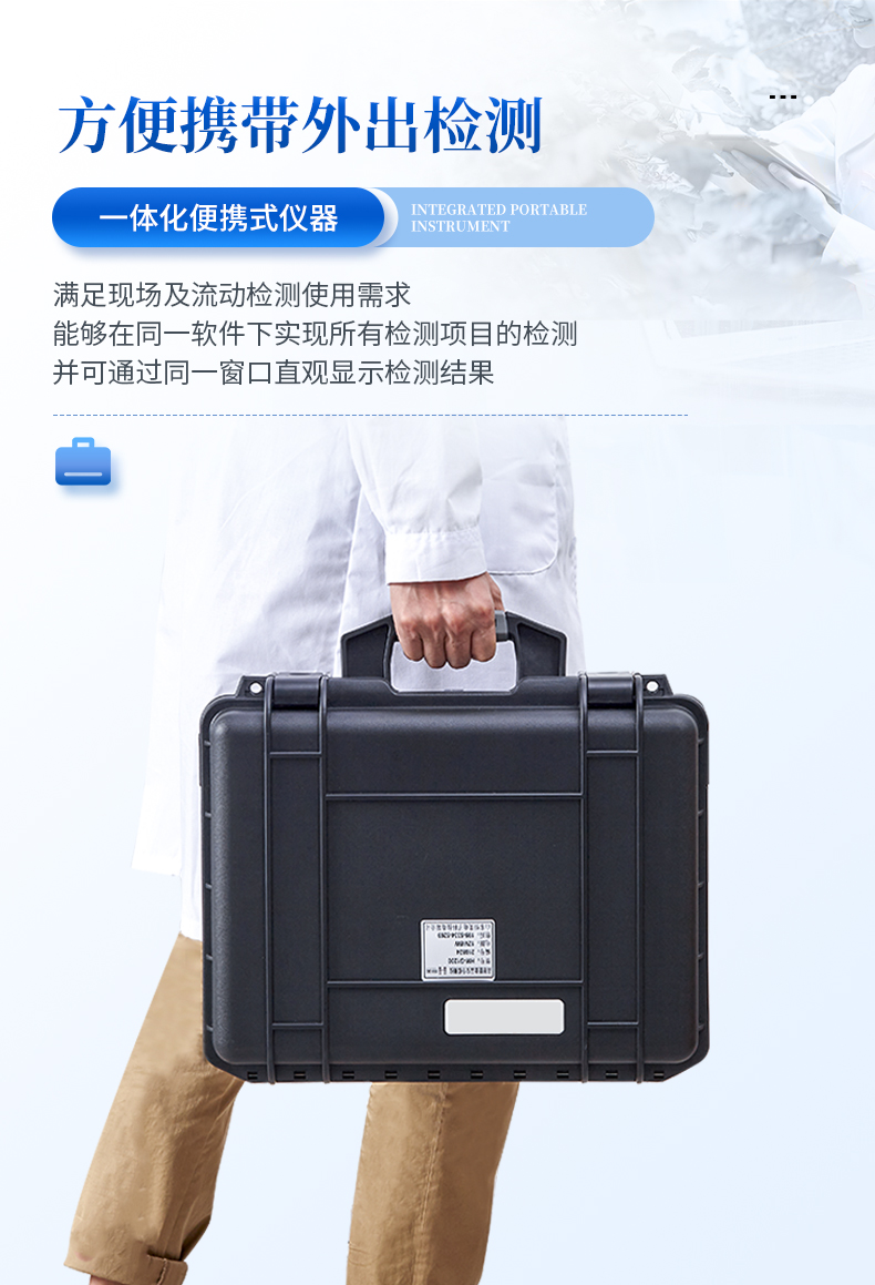 6、一體化便攜式快檢設(shè)備,滿足現(xiàn)場(chǎng)及流動(dòng)檢測(cè)使用需求,能夠在同一軟件下實(shí)現(xiàn)所有檢測(cè)項(xiàng)目的檢測(cè),并可通過同一窗口直觀顯示檢測(cè)結(jié)果。
