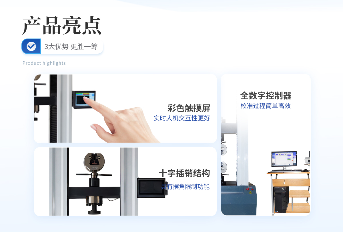 (1)采用高精度、全數(shù)字調速系統(tǒng)及精密減速系統(tǒng),驅動精密絲杠副進行試驗,實現(xiàn)試驗速度的大范圍調節(jié),試驗過程噪音低、運行平穩(wěn)。(2)可選用萬向節(jié)十字插銷結構,一方面便于試樣夾持,保證試驗同心度,另一方面很好的消除了不規(guī)則試樣對傳感器的影響。(3)Windows操作系統(tǒng),人性化操作界面,可顯示試驗方法選擇界面、試驗參數(shù)選擇界面、試驗操作及結果顯示界面和曲線顯示界面,并可實時顯示各參數(shù)曲線,便于試驗數(shù)據(jù)分析,過程監(jiān)控。(4)可實現(xiàn)試樣裝夾時橫梁快慢升降調整,具有過流、過壓、過載等保護裝置。(5)帶打印功能,可直接實現(xiàn)試驗過程的控制及數(shù)據(jù)的存儲、打印。