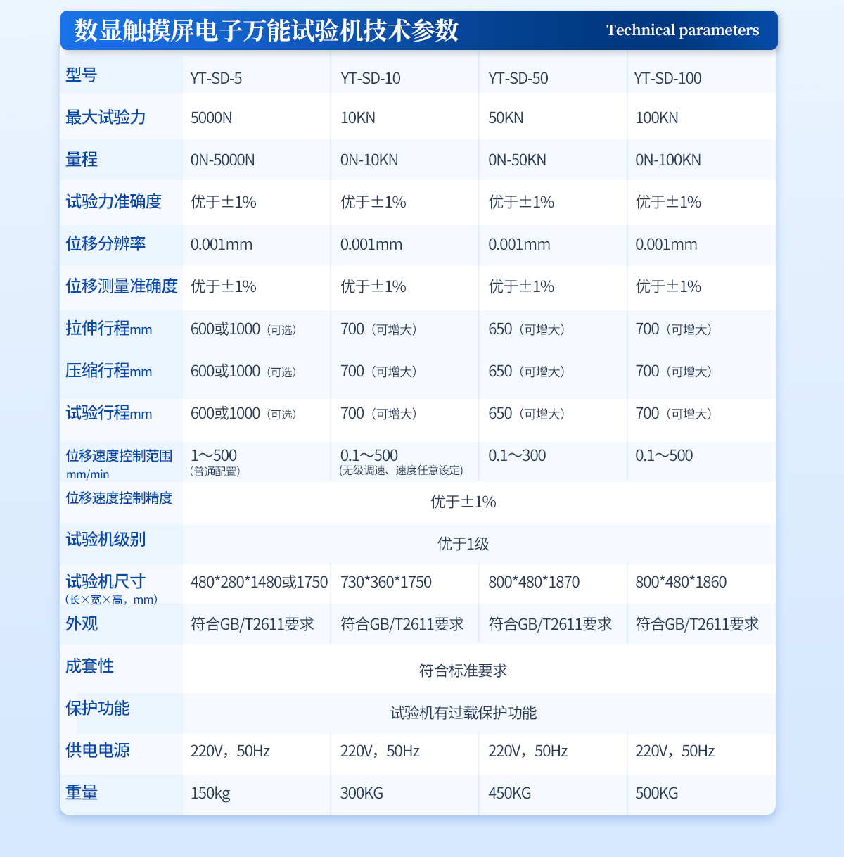 型號:YT-WD-50 主要用途:該系列微機控制電子萬能試驗機適用于橡膠、塑料、紡織物、防水材料、電線電纜、網繩、金屬絲、金屬棒、金屬板、各種金屬、非金屬及復合材料的力學性能指標的測試,如各種拉伸試驗,通過更改附具便可輕松完···   更新時間:2026-03-14
