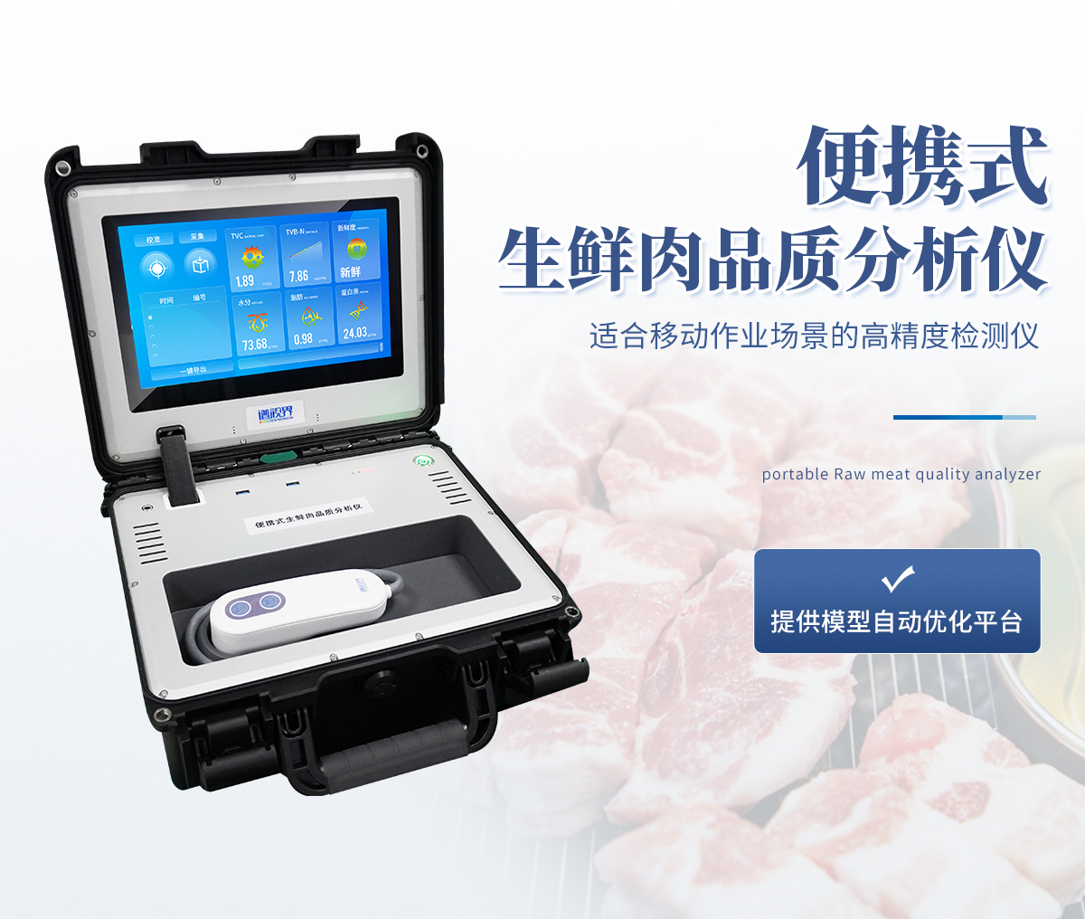 可用于檢測生鮮肉的蛋白質(zhì)、脂肪、水分、pH、TVC、TVB-N、新鮮度、L*、A*、B*等品質(zhì)參數(shù)。配備手提箱式防水減震外殼、大尺寸觸控屏幕并內(nèi)置大容量電池,可一鍵自動(dòng)校準(zhǔn),是一款適合移動(dòng)作業(yè)場景的高精度生鮮肉品質(zhì)檢測儀,其可用于生鮮肉及肉品生產(chǎn)、加工、儲(chǔ)運(yùn)企業(yè)、肉品品質(zhì)監(jiān)管部門等。