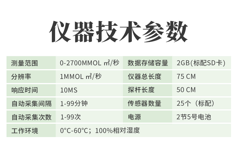 測量范圍0~2000μmol/㎡?S